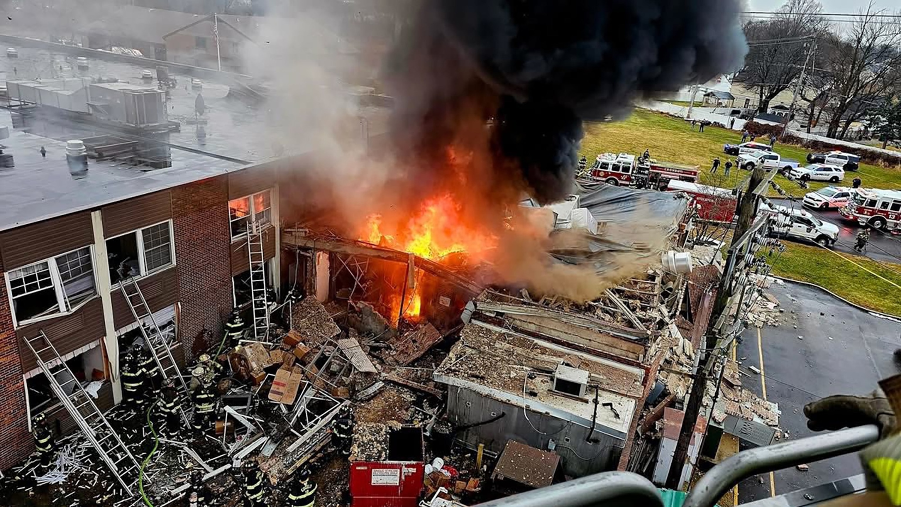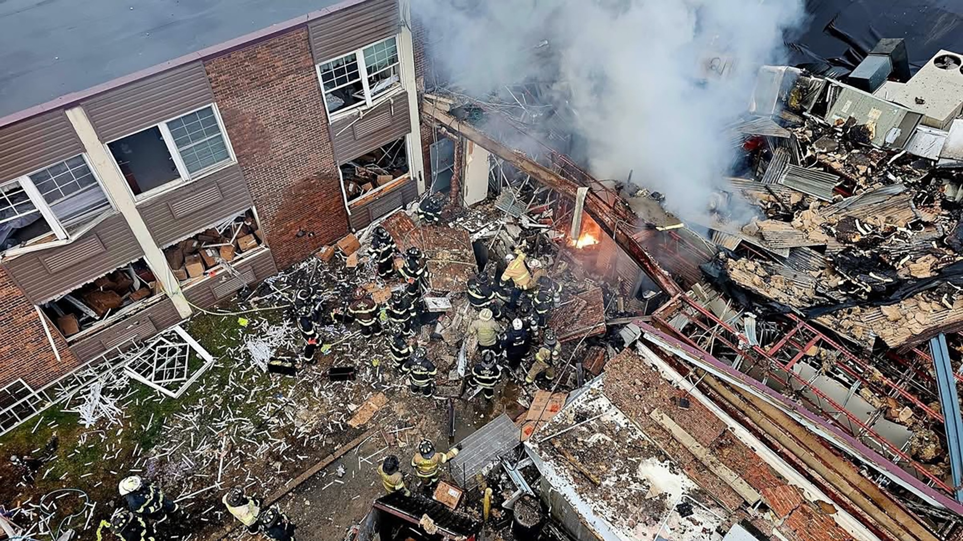 Petugas pemadam kebakaran bekerja di sekitar Pusat Kesehatan & Rehabilitasi Bristol setelah ledakan gas, 23 Desember 2025, di Bristol, Pa.