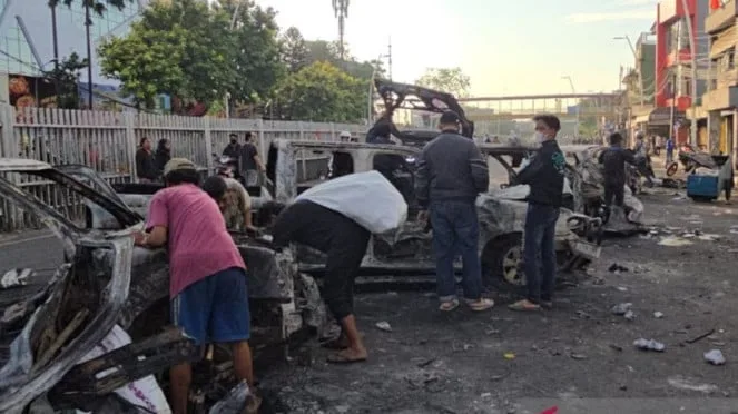 Sebelumnya, ratusan massa menyerang Polres City Jakarta Timur (Jaktim) sehingga puluhan kendaraan berupa mobil dan sepeda motor yang terparkir di depan gedung hangus terbakar, Sabtu dini hari, 30 Agustus 2025
