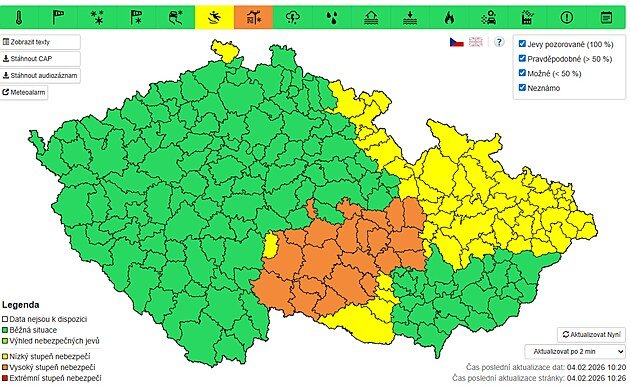 tentang wilayah Moravia utara, Silesia dan ratusan kabupaten utara dan timur laut, Republik Ceko mengumumkan situasi hidrometeorologi. Sejauh ini berlaku untuk Dataran Tinggi Moravia Esko, sebelah barat Wilayah Moravia Selatan, dan sebelah tenggara Wilayah Moravia Selatan.
