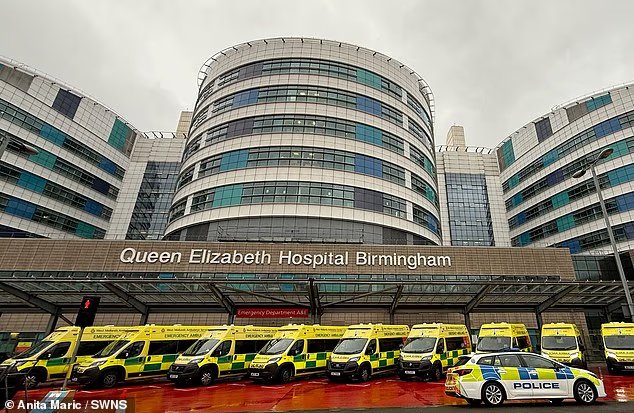 Deretan ambulans diparkir di luar Rumah Sakit Queen Elizabeth, Birmingham, awal bulan ini