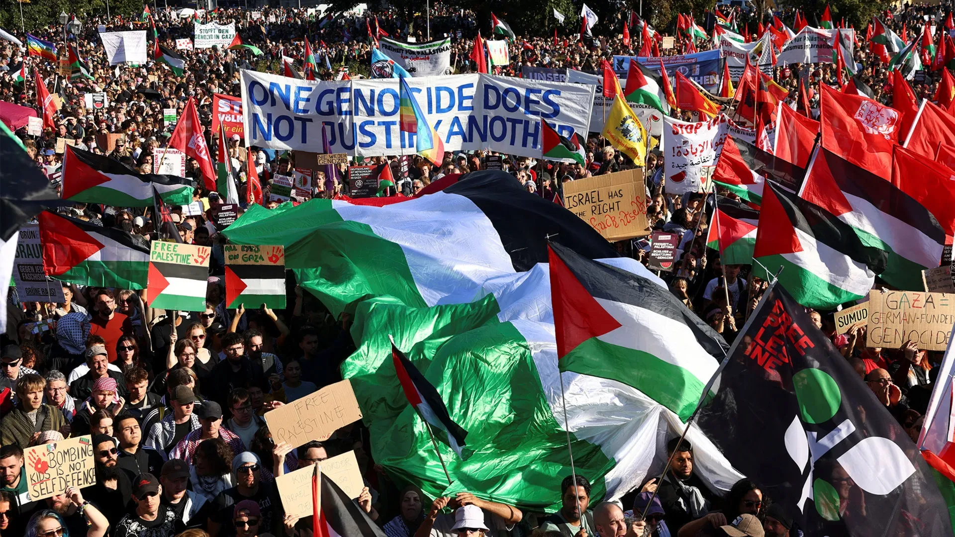 Sebanyak 100.000 orang di Berlin berkumpul untuk mendukung warga Palestina dalam protes Gaza terbesar di Jerman hingga saat ini. Demonstrasi itu, dijuluki ‘All Eyes on Gaza’, menuntut diakhirinya dukungan Jerman untuk Israel. Polisi difilmkan dengan keras menangkap peserta.