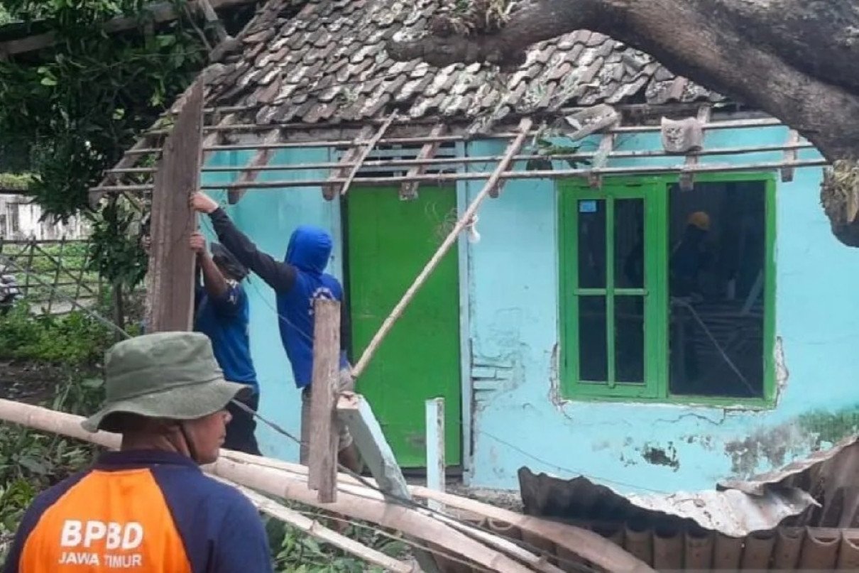 Angin puting beliung disertai hujan menerjang Desa Wringinanom, Panarukan, Situbondo, merusak enam rumah warga dan menumbangkan pohon.