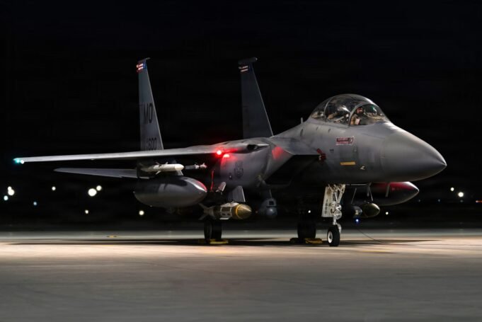 F- 15 E Strike Eagle Angkatan Udara AS meluncur di pangkalan di wilayah tanggung jawab Komando Pusat AS untuk mendukung Operasi Hawkeye Strike, 10 Januari 2026
