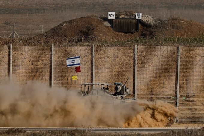 Sebuah kendaraan militer bermanuver di sisi Israel di perbatasan Israel-Gaza, di Israel, 3 Oktober 2025.