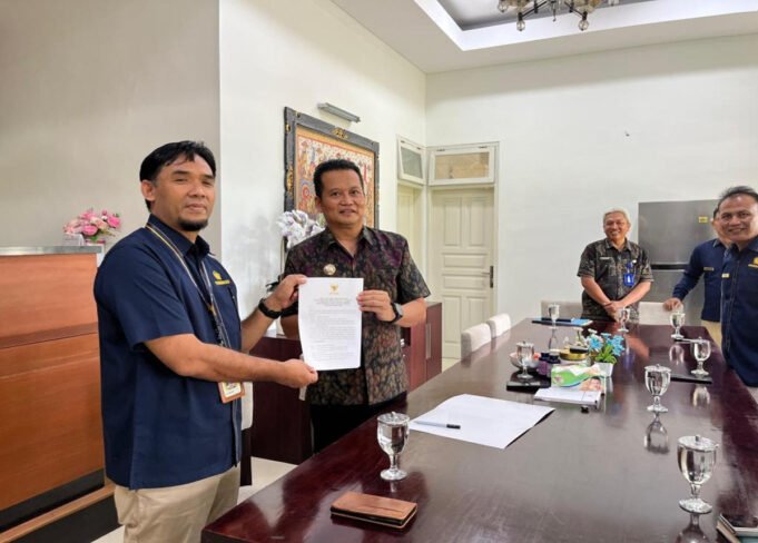 Bupati Jembrana Kembang Hartawan menyiapkan lokasi strategis di tanah milik Kementerian Keuangan untuk para PKL seusai penandatangan perjanjian pinjam pakai tanah milik Kementerian Keuangan di Rumah Jabatan Bupati Jembrana, Selasa (23/12 Foto: Humas Pemkab Jembrana