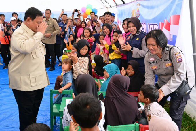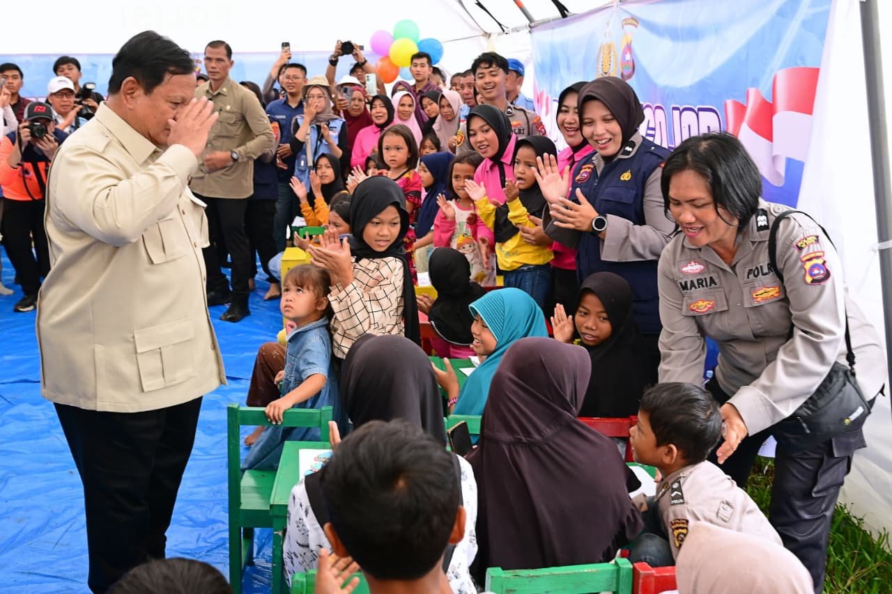 Prabowo saat meninjau Posko Pengungsi di SD 05 Kayu Pasak, Nagari Selareh Aia, Kabupaten Agam, pada Kamis (18/12). Foto: dokumentasi Biro Pers Istana