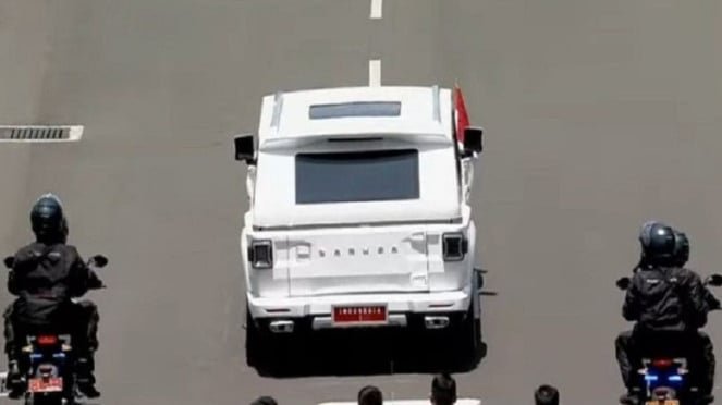 “Kita sudah menghasilkan jip buatan Indonesia, jadi sekarang pejabat-pejabat kita, perwira-perwira kita bangga, kita tidak pakai jip buatan negara lain, kita pakai jip buatan Indonesia sendiri,” kata Prabowo.