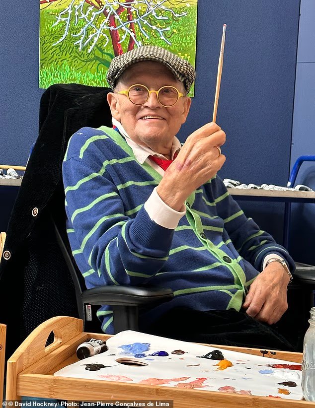 Mr Hockney berkata: ‘Saya selalu percaya bahwa seni harus menjadi kesenangan yang mendalam. Selalu ada, di mana pun, penderitaan yang sangat besar, namun saya percaya bahwa tugas saya sebagai seniman adalah mengatasi dan meringankan kemandulan keputusasaan.
