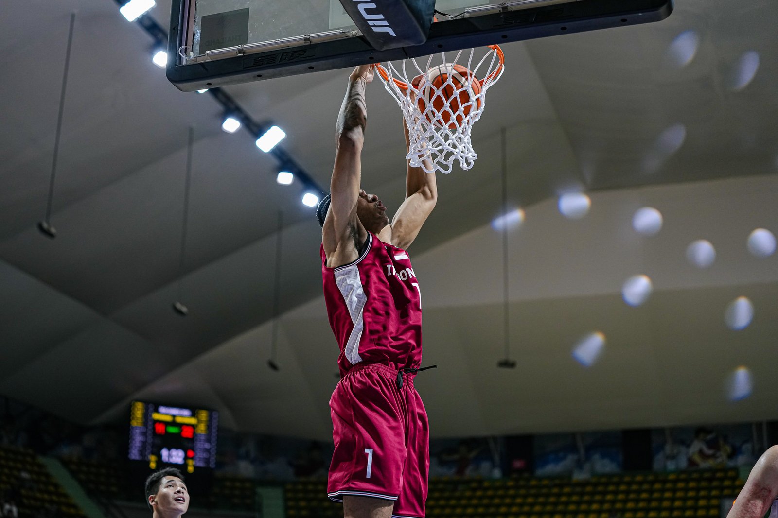 Aksi pebasket Derrick Michael Xzavierro saat berlaga pada ajang SEA Games 2025 melawan Myanmar di Nimibutr Arena, Bangkok, Sabtu (13/12). Foto: Facebook/Basketball Sport Association of Thailand