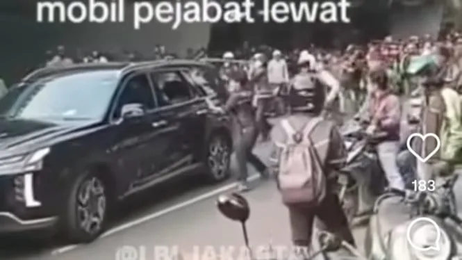 Puluhan demonstran menghadang jalan dan seketika melampiaskan kemarahan. Tanpa basa-basi, massa menggebuk mobil mewah itu dengan batu, kayu, bahkan tangan kosong. Kaca depan pecah berantakan, bodi penyok di sana-sini. Situasi makin panas sebelum akhirnya korban berhasil menyelamatkan diri.