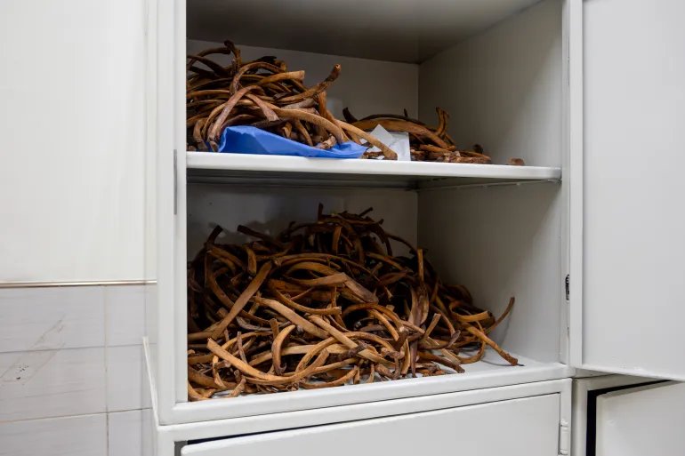 Satu kabinet seluruhnya didedikasikan untuk tulang rusuk. Yang lainnya berisi tengkorak.