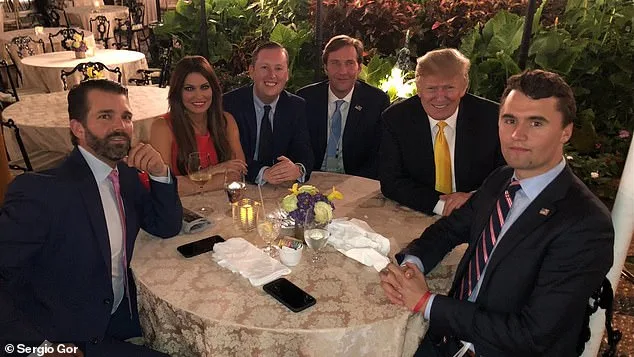Charlie Kirk (foto, benar) seperti ‘putra angkat’ untuk presiden dan ‘adik laki-laki’ kepada Donald Trump Jr. Dia makan malam bersama mereka di sini di Mar-a-Lago pada tahun 2019