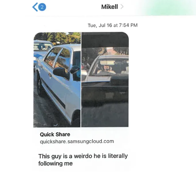 “Orang ini aneh, dia benar -benar mengikuti saya,” Jordan mengirim sms kepada bosnya pada 16 Juli 2024 “Lain kali saya membuat laporan polisi karena melecehkan saya.”