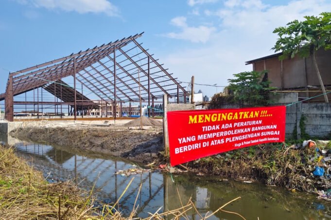 jatim.jpnn.comSURABAYA – Warga yang tergabung dalam Paguyuban Petani Tambak Keputih melakukan protes atas proyek pembangunan padel yang diduga menyerobot sungai kawasan Keputih Tegal Timur, Surabaya, Jumat (6/2).