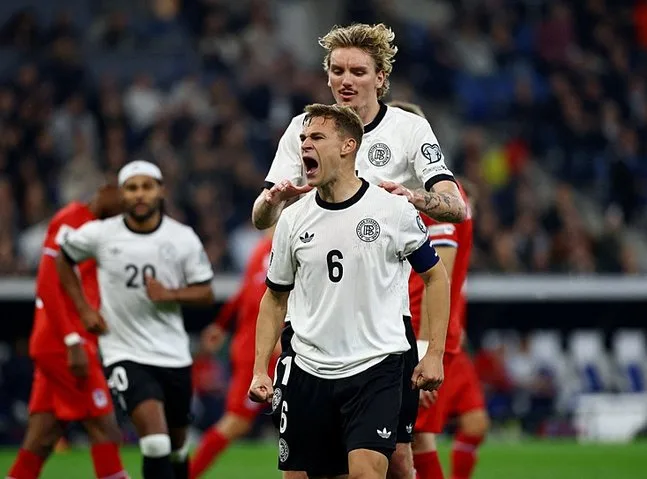 Jerman Joshua Kimmich mencetak dua gol untuk membawa timnya meraih kemenangan kandang 4-0 atas Luksemburg dalam kualifikasi Piala Dunia pada hari Jumat di mana tim tamu bermain dengan 10 pemain di babak pertama dan tuan rumah naik ke puncak klasemen di Grup A yang ketat.