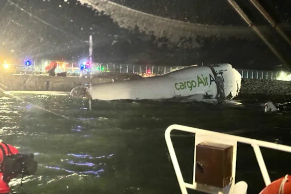 Sebuah foto yang diposting oleh AirNavRadar menunjukkan Boeing 747 yang terendam sebagian dengan bagian belakangnya, termasuk sirip ekor, hilang. Layanan pelacakan penerbangan tidak menyebutkan dari mana mereka mendapatkan foto tersebut, dan Bloomberg News tidak dapat segera memverifikasi isinya.