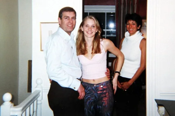Pangeran Andrew dengan Virginia Roberts Giuffre (tengah) pada tahun 2001 dan asisten pribadi Epstein saat itu, Ghislaine Maxwell. Kredit: