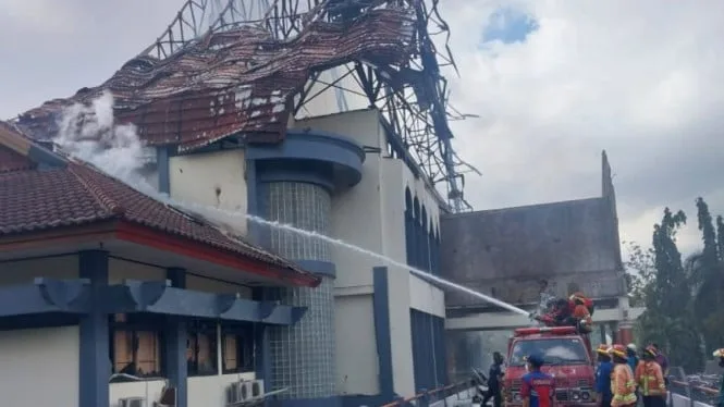Dari pantauan di lokasi kejadian pada pukul 16 00 Wita, sejumlah petugas pemadam kebakaran dari Pemerintah Kota Mataram masih memadamkan api yang masih menyala di Gedung DPRD NTB.