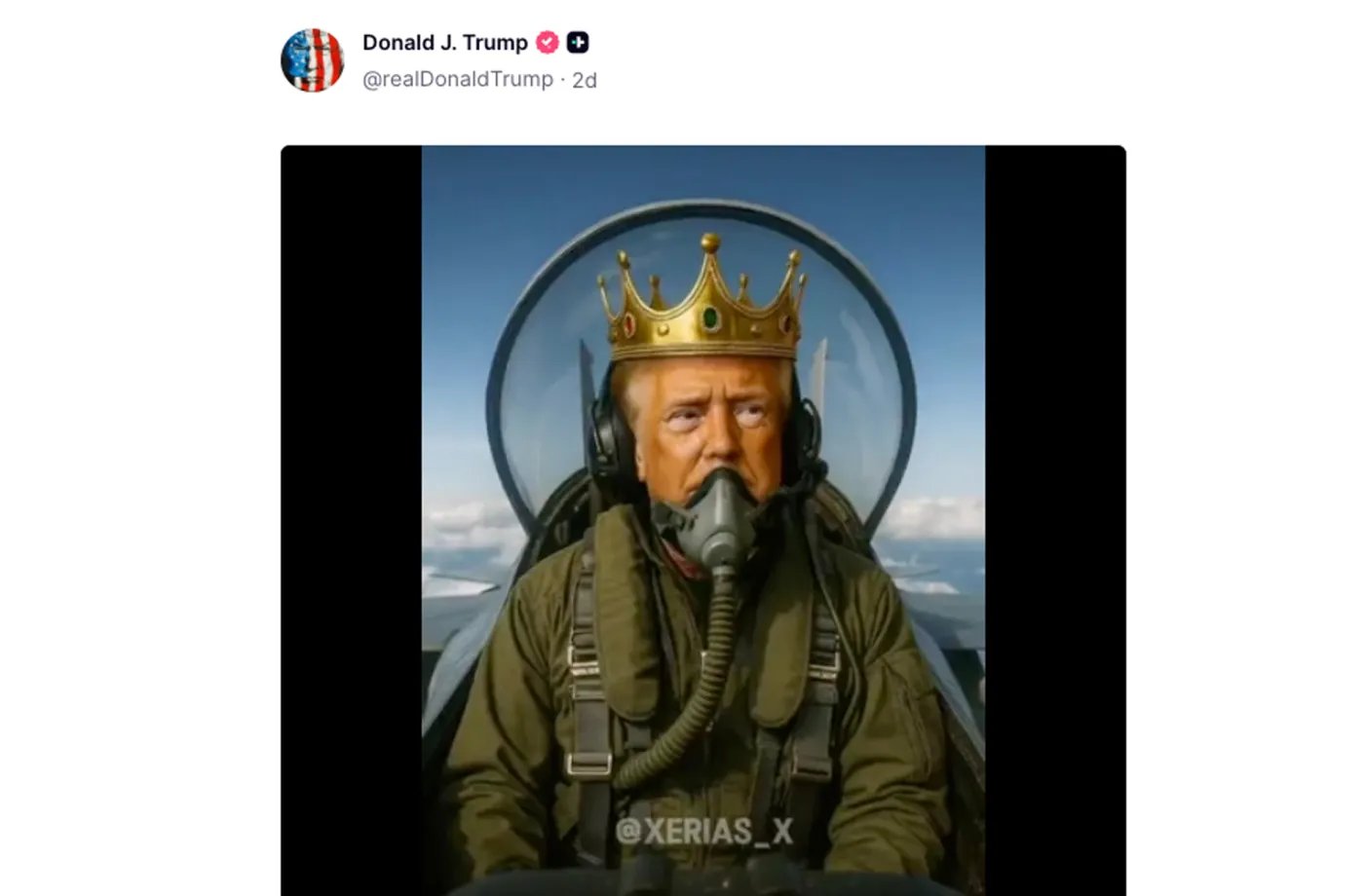 Pada hari Sabtu, mungkin karena tersengat oleh protes besar-besaran yang bertajuk “Tak Ada Raja” di tingkat nasional, Trump mengunggah video yang dihasilkan oleh kecerdasan buatan di Truth Social yang secara tidak sengaja menggambarkan pendekatannya terhadap pemerintahan.