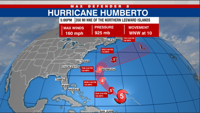 Tampa, Florida (Wfla) – Badai Humberto telah menguat menjadi kategori 5. Sementara itu, depresi tropis sembilan diperkirakan akan menguat menjadi badai tropis pada Sabtu malam atau Minggu pagi. Hujan lebat berlanjut di atas bagian -bagian Kuba timur dan Bahama.