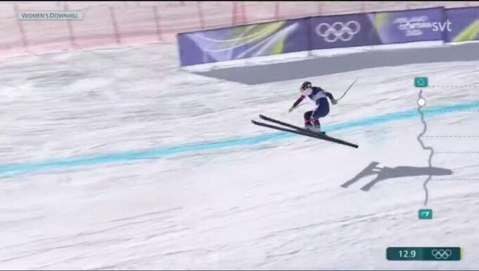 Lindsey Vonn mengalami kejatuhan spektakuler dalam tes menuruni bukit, hanya 10 detik setelah startyang membawanya keluar dari kompetisi medali. Lengan kiri Vonn terjepit di gerbang, kehilangan kendali saat melompat dan terjatuh dengan keras di trek Olimpia delle Tofane, di mana dia telah memenangkan 12 dari 84 kemenangannya di Piala Dunia. Hal ini memastikan nasib kembalinya ia dengan gemilang pada tahun 2025 setelah pensiun pada tahun 2019, dengan cedera lutut kanan palsu sebagian.