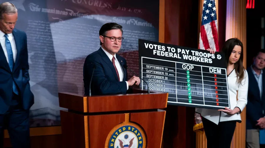 Ketua DPR Mike Johnson (R-La.) pada hari Sabtu menyalahkan Partai Demokrat atas hilangnya gaji militer karena kebuntuan penutupan masih berlanjut, menunjuk pada tujuh pemungutan suara yang gagal di Senat untuk meloloskan rancangan undang-undang pendanaan sementara.