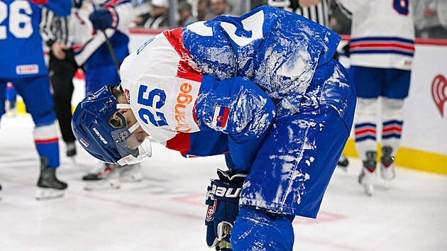 Andrej Fabu dari Slovakia berjuang untuk memimpin dalam pertandingan melawan Amerika Serikat.