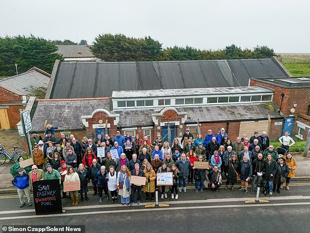Sekelompok orang melakukan protes di luar Kolam Renang Eastney, yang digunakan sebagai tempat pelatihan ‘Pahlawan Cockleshell’ Perang Dunia Kedua dan akan dibongkar oleh dewan