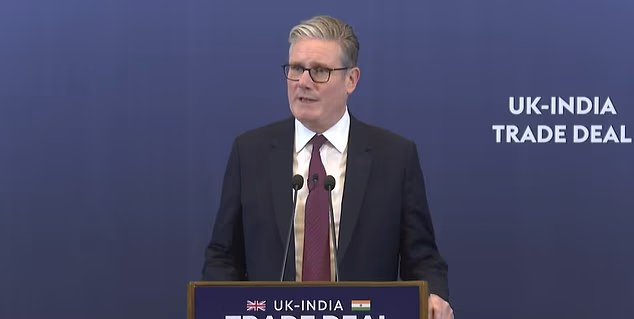 Berbicara pada konferensi pers selama perjalanan dagang ke India, Sir Keir mengatakan kesepakatan hari ini adalah ‘terobosan nyata’ yang perlu diterapkan.