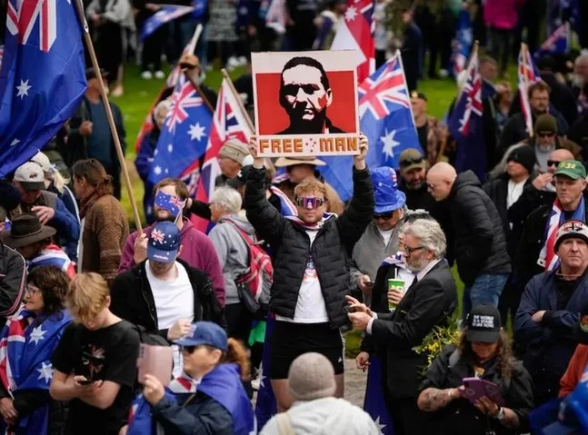 Di pusat kota Melbourne, ratusan petugas, termasuk polisi anti huru hara dan polisi, membentuk penghalang antara peserta “March for Australia” – yang berjumlah ribuan – dan pengunjuk rasa anti-rasisme, demikian laporan stasiun televisi ABC.