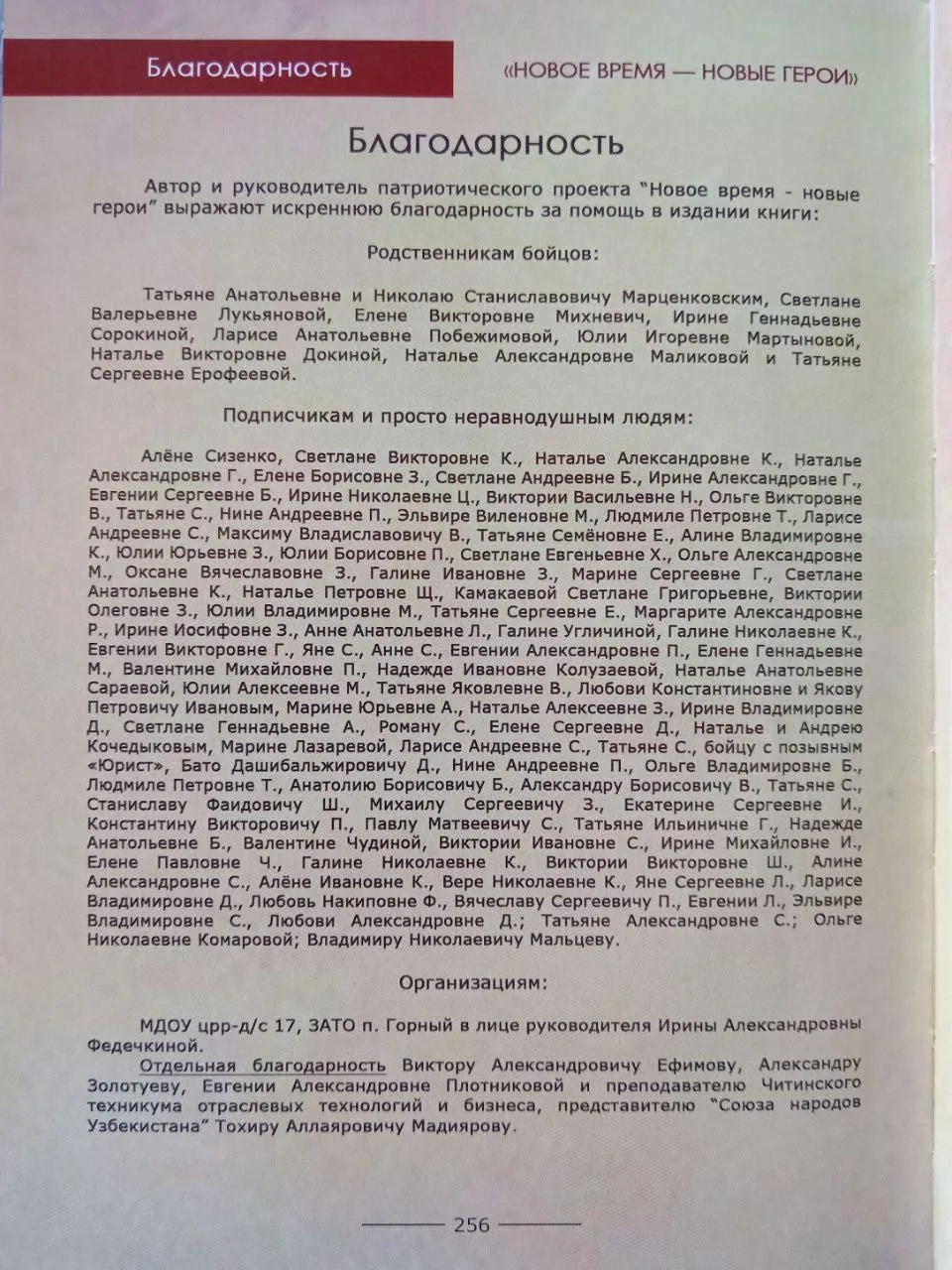 Penulis buku itu adalah penulis Maxim Stefanovich. Dia muncul sesuai dengan proyek patriotik Perpustakaan Desa Darasun “Waktu Baru – Pahlawan Baru”, yang penulisnya adalah Tatyana Makarova. Pada bulan Mei, publikasi tersebut dipertanyakan, karena tidak ada dana.