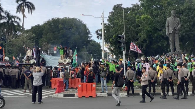 Aksi unjuk rasa chauffeur ojek online atau ojol