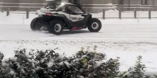 Dune buggy terlihat mengemudi di jalanan Philadelphia yang bersalju