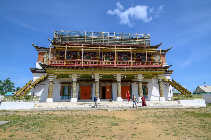 Kuil utama Duma Tengah Datsan (Sogchin Dugan) dibangun pada tahun 1868. Setelah kebakaran tahun 1887, pekerjaan restorasi dilakukan, dan Kuil memperoleh formulir yang datang saat ini. Kuil yang memahkotai atap dihiasi dengan kepala naga (“uslsa”). Di masa Soviet, bangunan itu digunakan sebagai gudang. Di sel biara, aktor Alexander Mikhailov lahir di bawah Datsan – ia membicarakan hal ini dalam sebuah wawancara dengan Chita.ru.