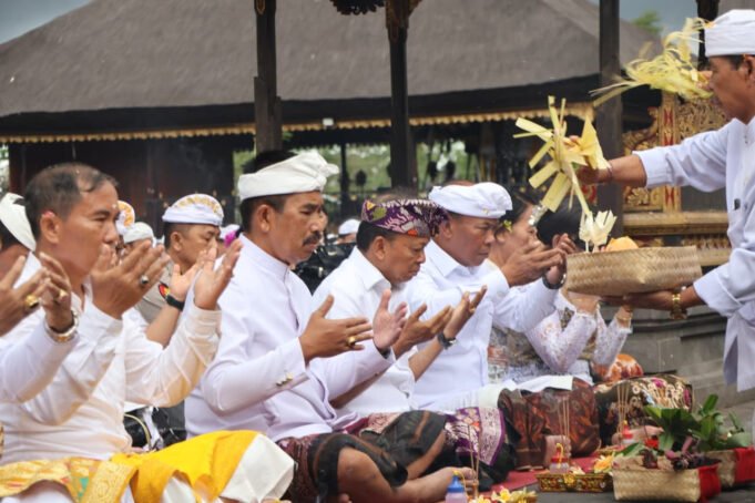 Gubernur Wayan Koster menghadiri prosesi Matur Piuning sebagai penanda diresmikannya Haluan Pembangunan Bali 100 Tahun 2025– 2125 di Pura Agung Besakih