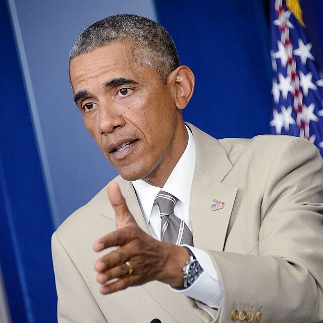 Barack Obama dalam setelannya pada konferensi pers pada tahun 2014.