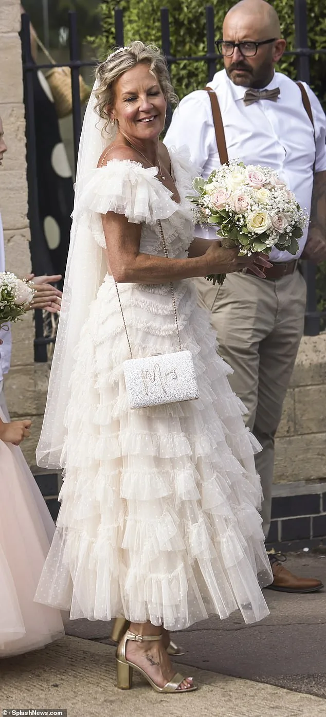 Lorraine Stanley, 49, tampak sensasional ketika dia mengikat ikatan dengan mitra jangka panjang Mark Perez dalam upacara pedesaan yang indah di Harpenden, Hertfordshire pada hari Kamis