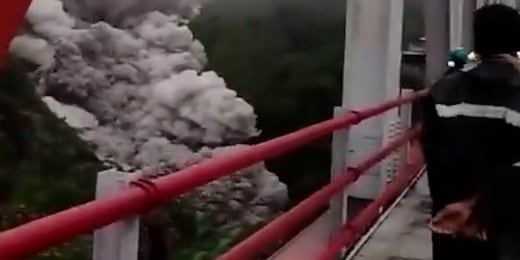 Gunung berapi di Indonesia meletus membuat orang berlarian
