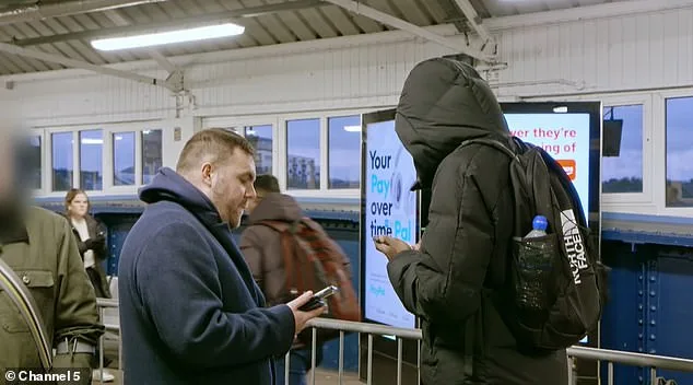 Dalam klip lain, tarif penumpang yang menghindari (kiri) dihadapkan oleh penyelidik di Stasiun Harold Wood di London Timur setelah menghindari membayar £ 1.650 dalam biaya tiket lebih dari 250 perjalanan