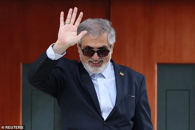 Duta Besar Iran untuk Australia Ahmad Sadeghi terlihat di depan kedutaan pada hari Kamis, melambaikan tangan kepada jurnalis sebelum ia masuk mobil diplomatiknya dan dibawa ke bandara.