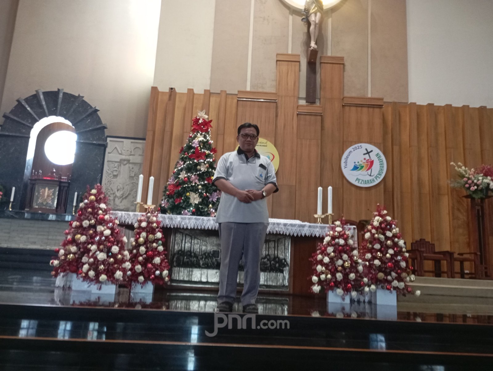 Romo Gereja Katolik Santo Yoseph, Hyginus Gonopratowo di Jalan Jenderal Sudirman, Palembang pada Rabu (24/12/2025). Foto: Cuci Hati/JPNN.com.