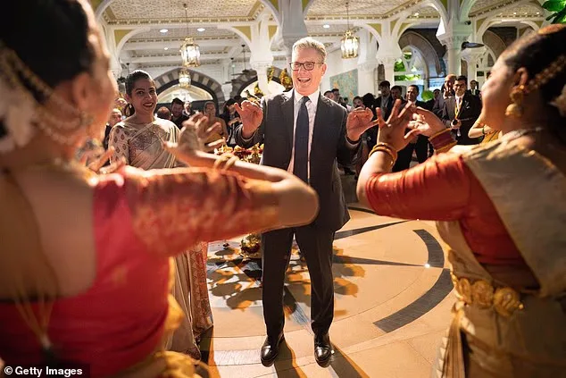 Seorang fotografer menangkap momen Keir Starmer menikmati boogie singkat saat musik diputar pada upacara Diwali di Mumbai