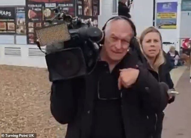 Video yang dibagikan di media sosial oleh kelompok kampanye konservatif Toalt UK menunjukkan aktivis mendekati jurnalis dan driver kamera di South Parade Pier di Portsmouth pada 30 Agustus.