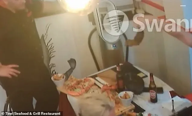 Diner itu juga terlihat memukuli kit retak lobster yang telah diberikannya di atas meja, membiarkannya rusak.