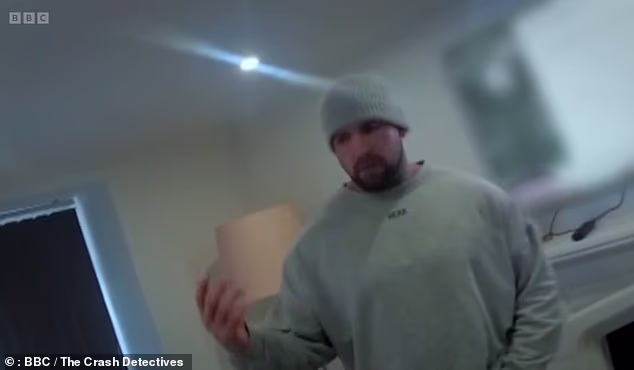 Rekaman yang mengejutkan menunjukkan pengemudi yang tidak tahu malu itu berusaha menghindari kesalahan ketika polisi datang ke rumahnya di Georgetown, Tredegar, untuk diinterogasi.