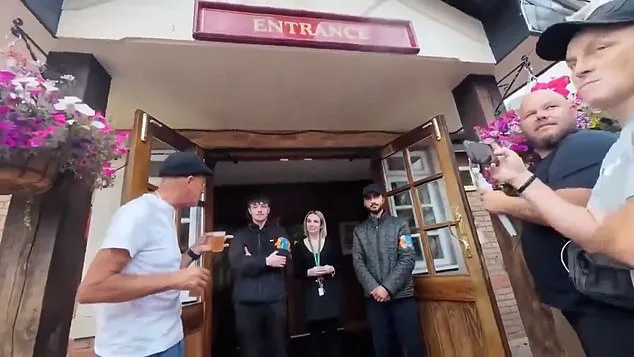 Pada titik ini, kerumunan kecil telah bergabung dengan pria yang sedang syuting, mengambil video mereka sendiri dan memotong keluhan tentang aturan pub
