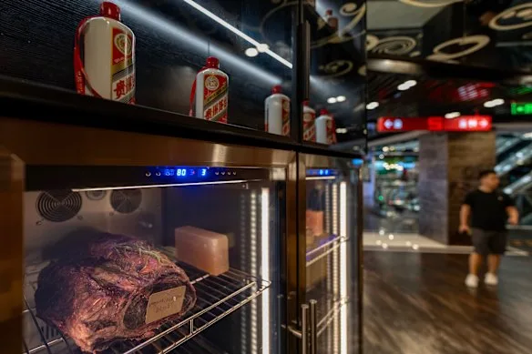 Kweichow Moutai dan Australian Wagyu Steak dipasangkan bersama di sebuah restoran di Beijing.