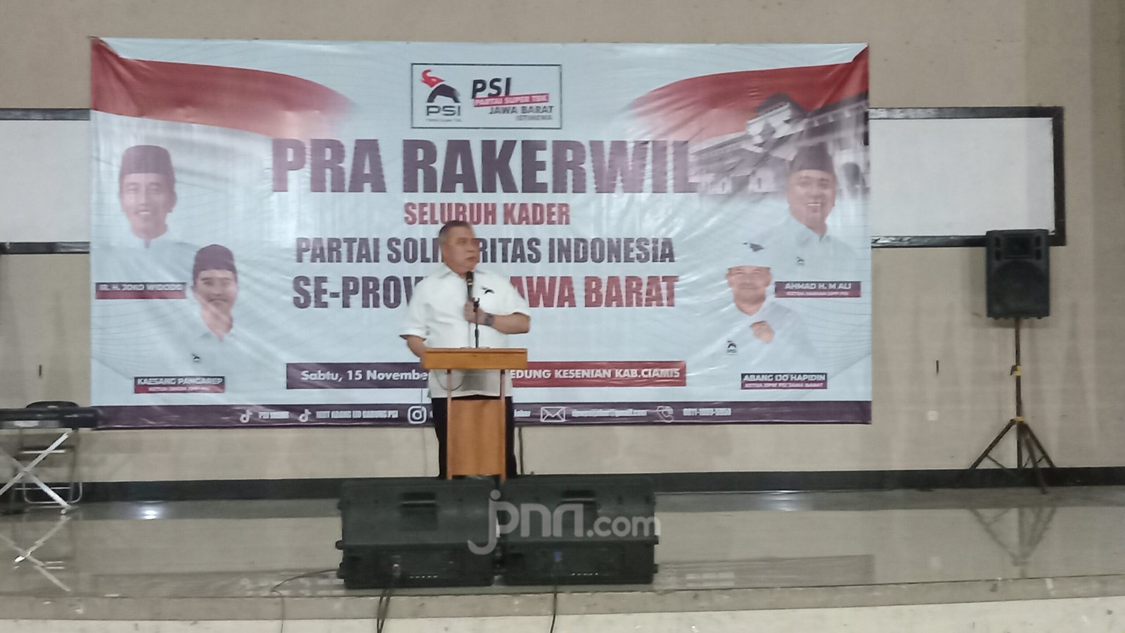 Ketua harian Partai Solidaritas Indonesia (PSI) Ahmad Ali saat pembukaan saat acara Pra-Rakorwil PSI Se-Jawa Barat di Ciamis, Jawa Barat, Sabtu (15/11). Foto: Kenny Kurnia Putra/jpnn