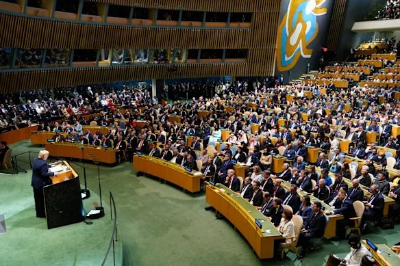 Ketika Gedung Putih ditandai, Trump berulang kali menyerang PBB itu sendiri, dan mengutuk globalisme. Dia menuduh PBB foisting perbatasan terbuka, kebijakan perubahan iklim dan perjanjian multilateral atas negara -negara maju, dan mengatakan dia dengan bangga menarik AS dari kesepakatan iklim Paris yang “palsu”.