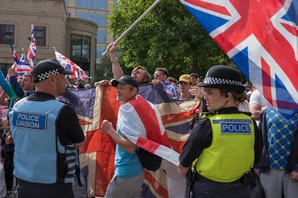 Pengunjuk rasa anti-imigrasi di Bristol pada hari Sabtu. Kredit: Gambar getty